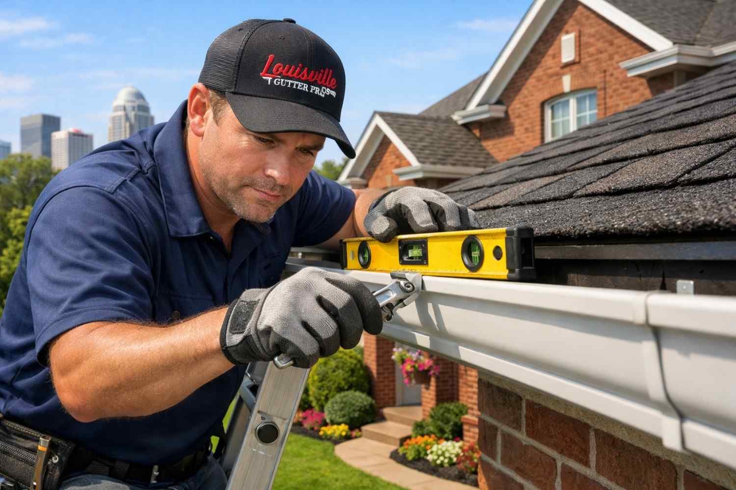 Gutter re-alignment services in Louisville, KY correct gutter slopes and angles, ensuring water flows freely and prevents costly foundation or roof damage.